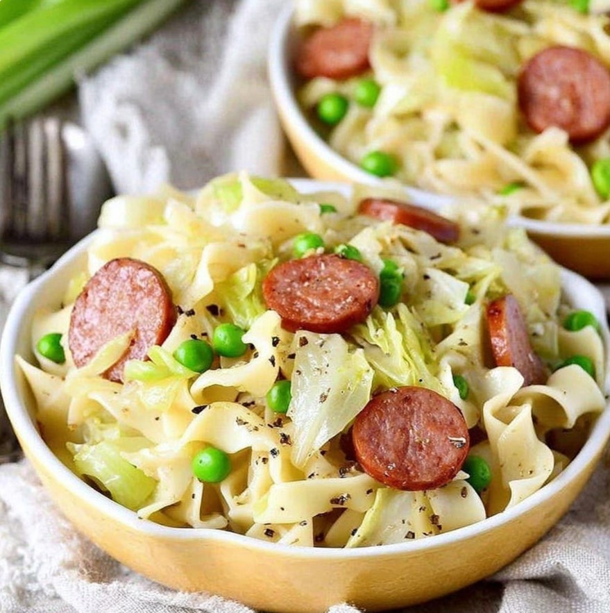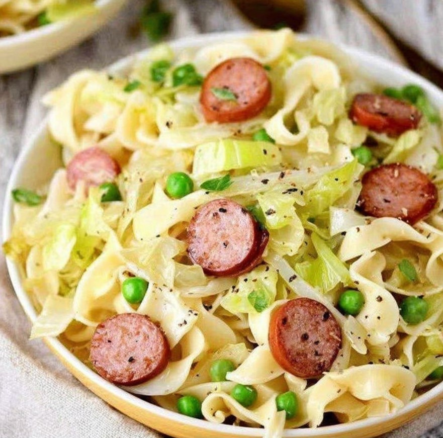 The cabbage is the star here. Once cooked down, it becomes sweet, tender, and full of flavor, blending beautifully with the soft egg noodles and savory sausage.