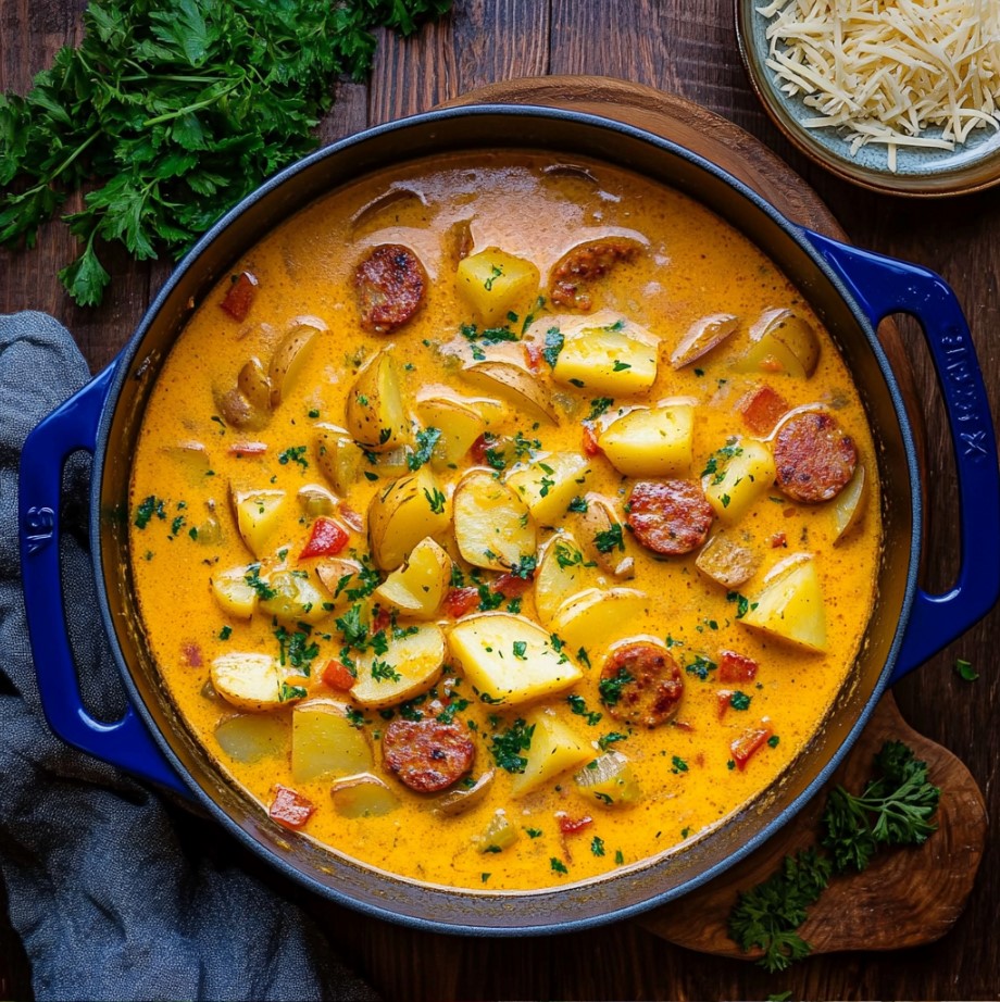 This comforting soup delivers bold, slow-simmered flavors that feel familiar without relying on takeout. Cajun Potato Soup blends smoky sausage, tender potatoes, and creamy cheese into a hearty bowl that’s cozy, satisfying, and full of character.