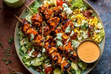 Chopped Buffalo Chicken Skewer Salad has everything needed to become a go-to dinner favorite. Juicy buffalo chicken is grilled on skewers, then chopped and tossed…