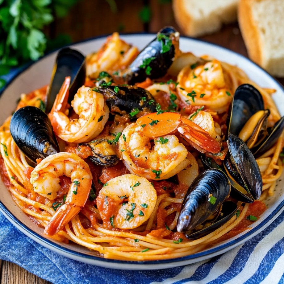 This seafood pasta brings together shrimp, clams, mussels, and scallops tossed with spaghetti in a rich homemade tomato sauce. It’s an easy yet elegant dish that feels restaurant quality but can be made right in your own kitchen.