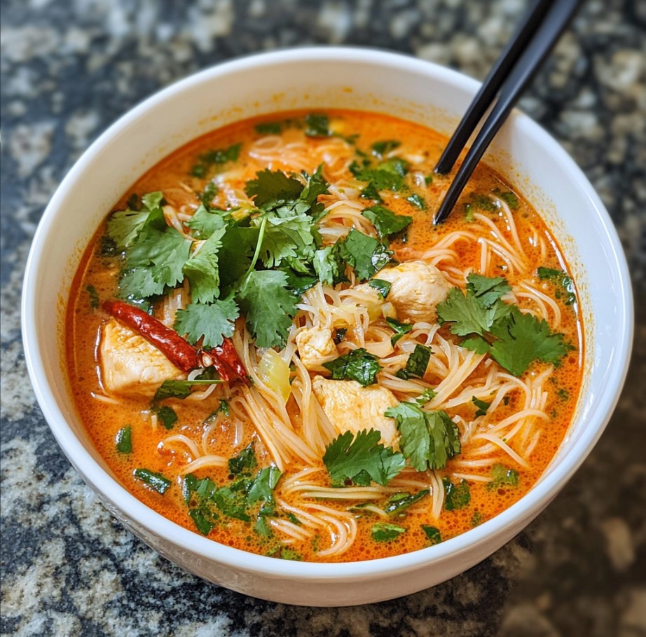 So much better than takeout, this Thai red curry noodle soup brings familiar flavors into a home-cooked setting that feels both comforting and thoughtful. Tender chicken, rice noodles, fresh herbs, and lime juice come together in a way that feels indulgent yet practical, making it a smart choice for anyone who enjoys bold flavors without relying on delivery.
