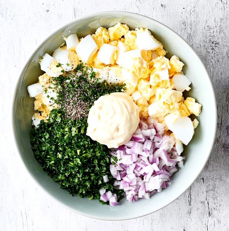 What really sets this recipe apart is the texture. There’s no over-mashing here. The eggs stay pleasantly chunky, with each ingredient clearly visible and contributing its own bite. It strikes that perfect balance between creamy and structured, so it holds up well whether you’re making a sandwich or serving it as a side.