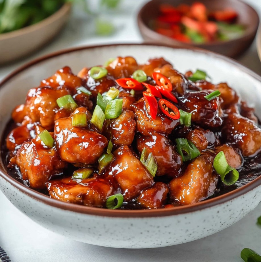 Mongolian chicken features bite-sized pieces of chicken that are lightly fried until crisp, then coated in a rich, hoisin-based sauce flavored with ginger, garlic, and red chili. The result is a bold, slightly sticky dish with layers of sweet and savory flavor.