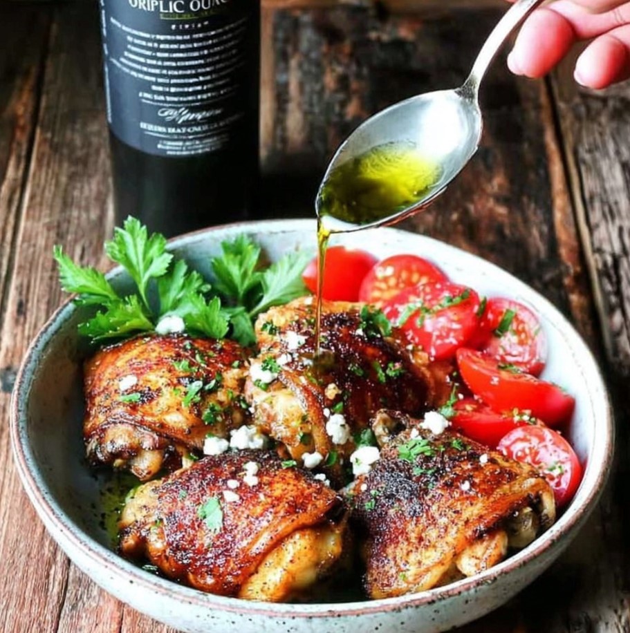 That is why quality matters so much. A good extra virgin olive oil will elevate the entire dish, adding depth and freshness that you can actually taste. When you start with great oil, something as simple as chicken thighs turns into a meal that feels restaurant worthy but is still easy to make at home.