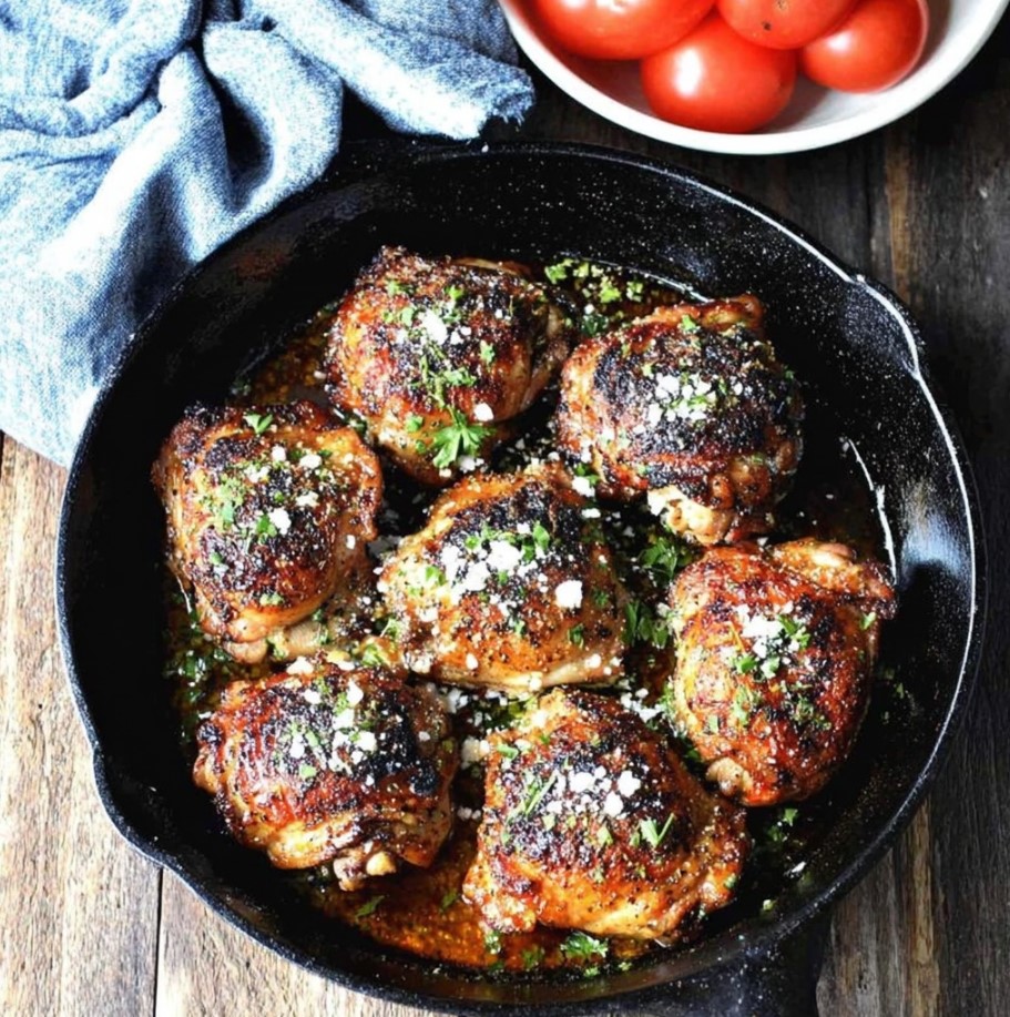 These Olive Oil Chicken Thighs are packed with bold Mediterranean flavor. The chicken is rubbed with a fragrant spice blend, marinated in extra virgin olive oil and fresh lemon, then seared until beautifully golden before finishing in the oven. Please leave a star rating and comment to let us know how you liked this recipe!Olive Oil Chicken Thighs Mediterranean Style