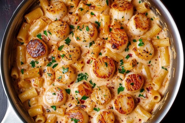 Creamy Mozzarella Scallop Pasta is one of the most irresistible scallop recipes you’ll ever make at home. Tender, golden-seared scallops are paired with perfectly cooked pasta, all tossed in a luscious cream sauce made with melted mozzarella, sun-dried tomatoes, garlic, and fresh basil. A pinch of red pepper flakes adds just the right touch of…