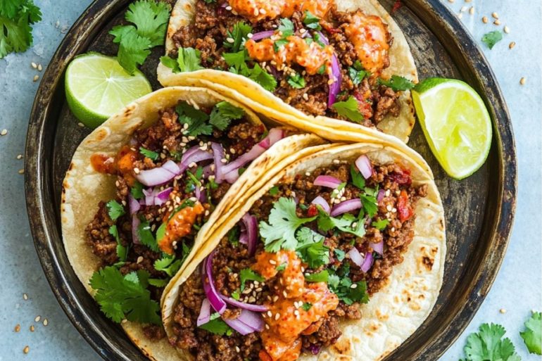 These Korean Tacos are about to become your new favorite fusion dish. Packed with juicy, flavorful Korean beef, caramelized kimchi, and a drizzle of creamy Sriracha mayo, they’re bold, vibrant, and impossible to resist. Each bite is a perfect blend of sweet, spicy, and savory flavors wrapped up in a soft tortilla. Say goodbye to…
