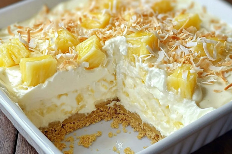 This no-bake pineapple cream dessert is a nostalgic classic that never goes out of style. Light, creamy, and full of tropical flavor, it’s the perfect summer treat for any gathering or cookout. Made with a buttery graham cracker crust and a smooth, pineapple-infused cream cheese filling, this dessert is like a tropical twist on cheesecake—no…