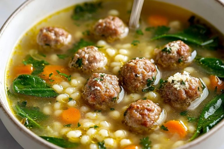 v This Italian Wedding Soup is a comforting classic made with juicy meatballs, tender pasta, and fresh spinach in a flavorful broth. It’s easy to prepare on the stove, in the Crock Pot, or using the Instant Pot. No matter how you cook it, the result is always delicious and satisfying. Please leave a star rating and comment to let us know how you liked this recipe!Italian Wedding Soup