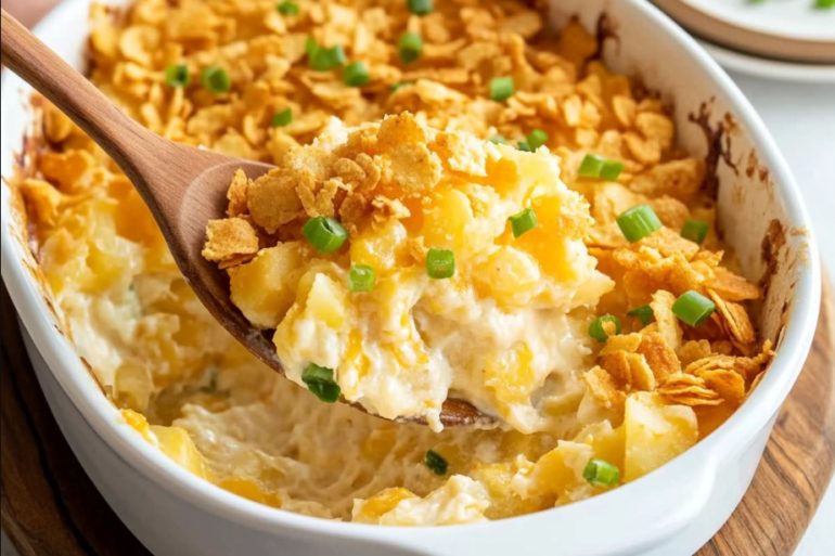 Cheesy Potatoes, also known as funeral potatoes or hashbrown casserole, are a creamy, crowd-pleasing favorite. Tender hashbrowns are mixed with sour cream and sharp cheddar, then baked under a crunchy, buttery cornflake topping for that perfect golden finish. No matter what you call it, this cheesy potato casserole always steals the show. Whether it’s a…