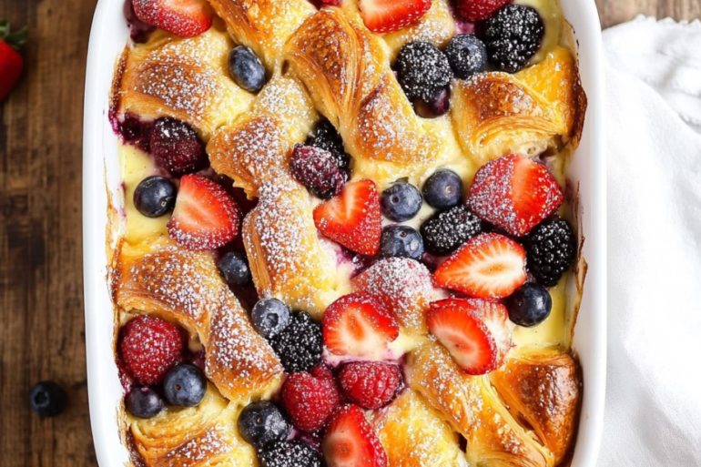 Berry Croissant Bake is one of those breakfast recipes that feels a little indulgent but is surprisingly easy to pull together. It’s filled with buttery croissants, a creamy sweetened cream cheese mixture, and bursts of juicy berries in every bite, giving you that bakery-style Danish flavor in a cozy casserole form that can be assembled…