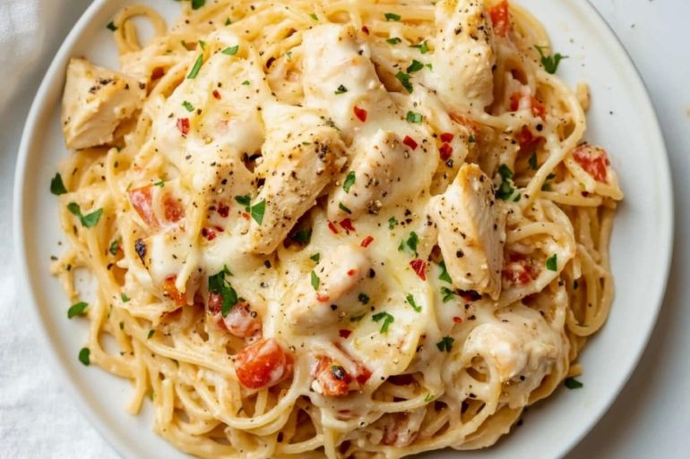 This Chicken Spaghetti is loaded with creamy goodness, thanks to a rich three-cheese blend of cream cheese, cheddar, and mozzarella. Rotel tomatoes add a burst of color and just the right amount of flavor to balance the creamy sauce. It’s a comforting, satisfying dish that’s perfect for busy weeknights or easy meal prep. Whether you’re…
