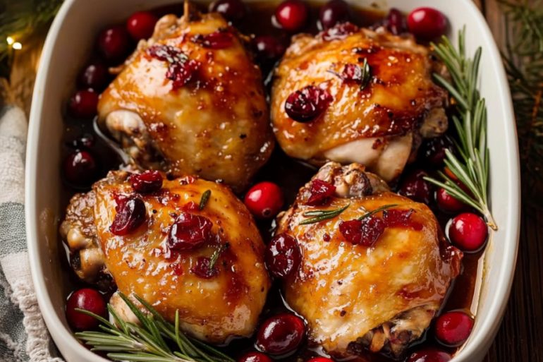 This Cranberry Chicken is an easy one-pan dish bursting with vibrant, wintery flavors. Juicy chicken thighs are simmered in a rich white wine sauce with tart cranberries, fragrant rosemary, and a touch of sweet maple syrup — a perfect harmony of savory and sweet. It’s effortlessly elegant yet simple enough for busy weeknights. Plus, with…
