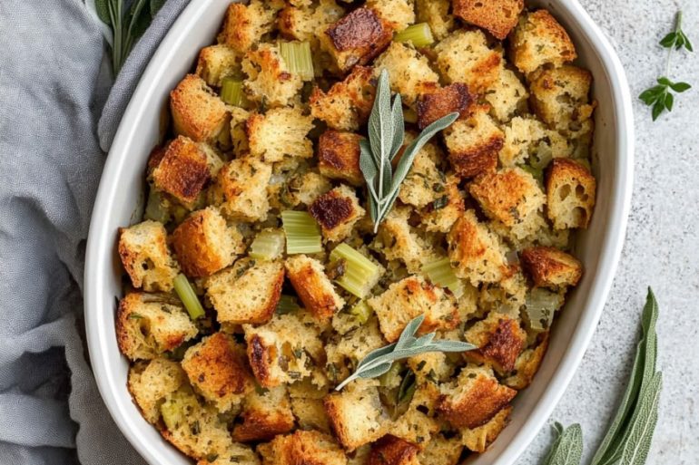 This Easy Stuffing Recipe is the ultimate comfort side dish that brings cozy, homemade flavor to any meal. It’s simple to make, yet absolutely packed with all those classic holiday vibes we crave. Fresh celery and onions are sautéed in butter until perfectly tender and fragrant, then tossed with dried bread cubes, savory herbs, and…