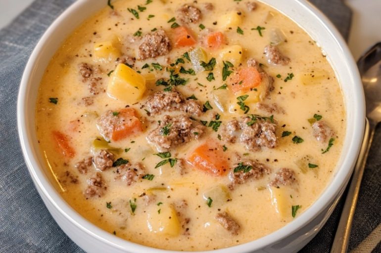 Cheeseburger Soup is the ultimate comfort food, combining all the flavors of a cheeseburger in a rich, creamy, and cheesy soup. With Velveeta as the base, this soup has a mild spice and is loaded with fresh ingredients. Every spoonful is packed with cheesy goodness that coats each vegetable, making it irresistible. It’s easy to…
