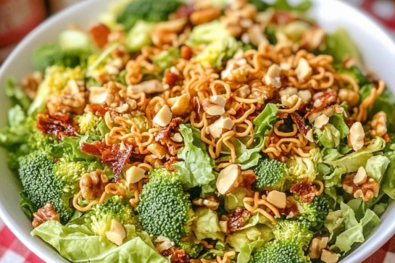 Crunchy Romaine Toss is the salad recipe you didn’t know you needed! This fresh and flavorful dish combines crisp romaine lettuce, broccoli, toasted ramen noodles, and crunchy walnuts, all tossed in a sweet and tangy homemade dressing. It’s the ultimate crowd-pleaser—perfect for potlucks, dinner parties, or as a refreshing side dish at your next gathering.…